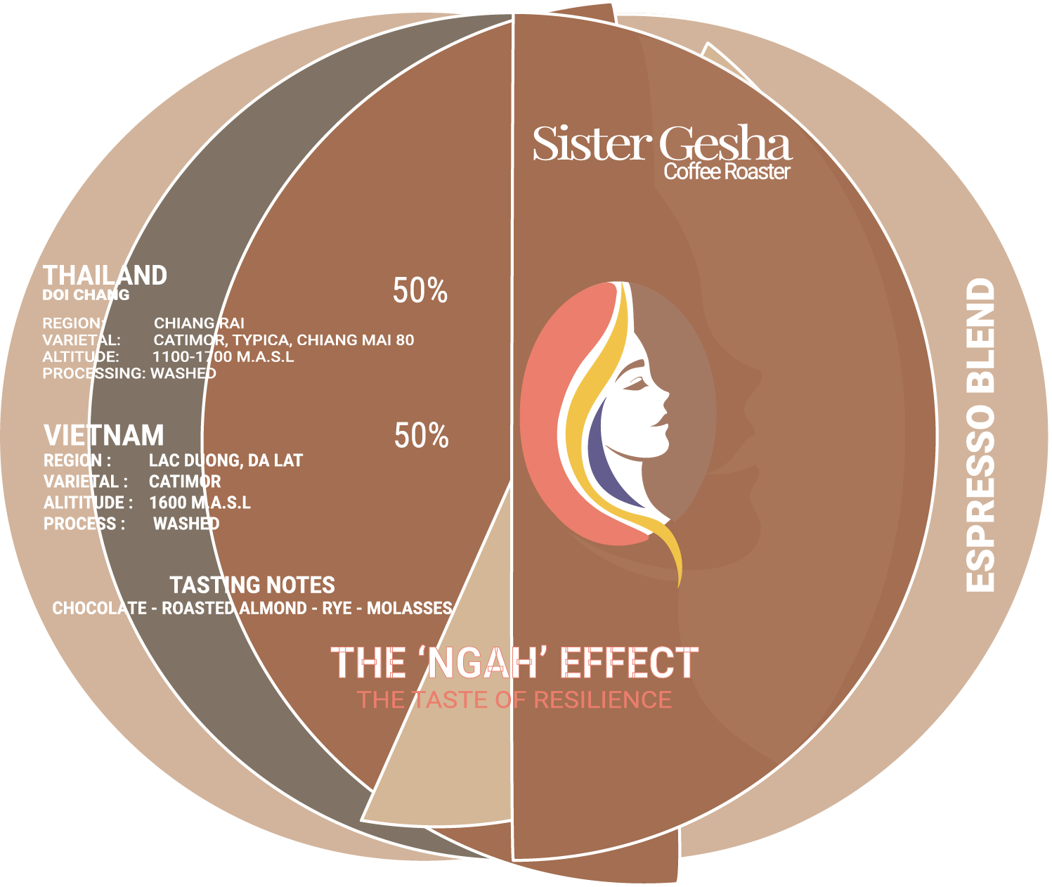 Delivers sharp grapefruit, deep dark chocolate, and a vibrant energy — the flavor punch that mirrors Ngah’s unstoppable will.